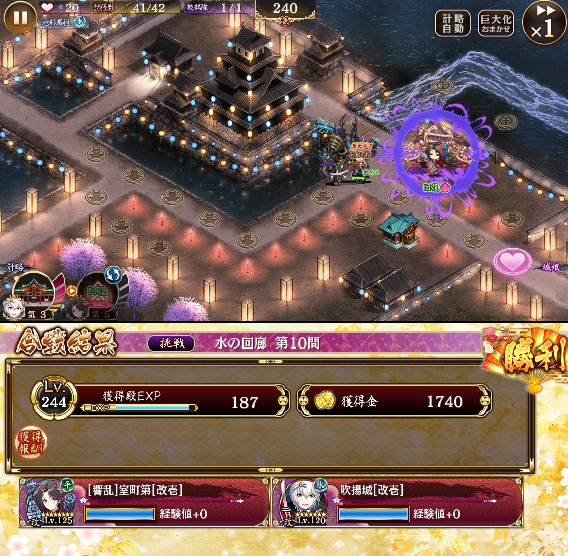 室町最大化後、ボス接近前に吹揚配置と回復計略に切り替え
