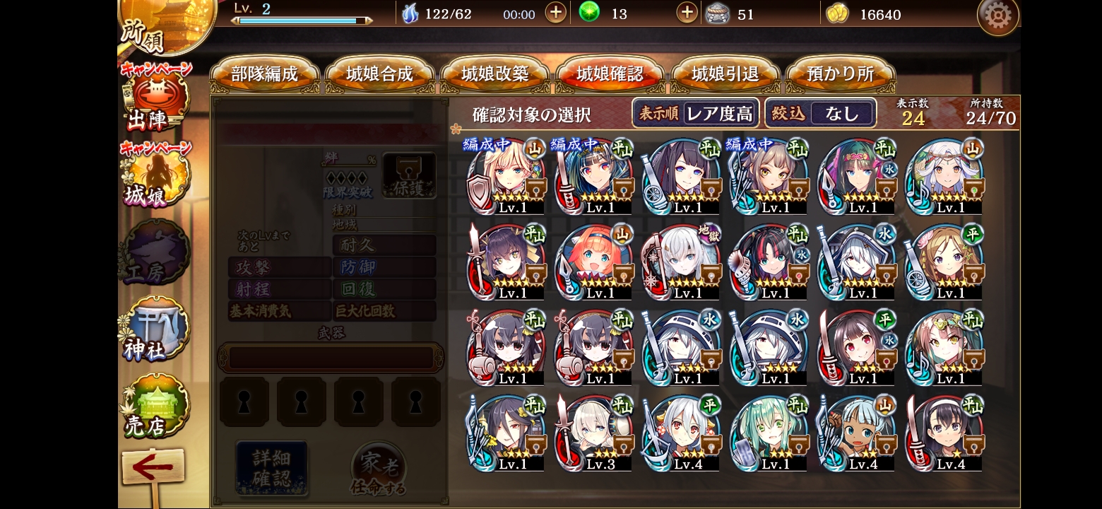周年だと聞いて、今日このゲームを始めました。貰った招城券を使ったら、こんな感じになりました。どんな編成でこれから進めていけばいいのか、アドバイスもらえますと嬉しいです。一応メインで力を入れているゲームが他にあるので、出来れば城プロでは攻略に詰まってにっちもさっちもいかない……なんてことは避けたいです。(そのゲームも城プロと同じタワーディフェンスですが、あまりにも育成がきつくて若干ストレスたまっちゃってるので) プレゼントボックスに9周年の招城券もあって、そちらのおすすめも知りたいです。