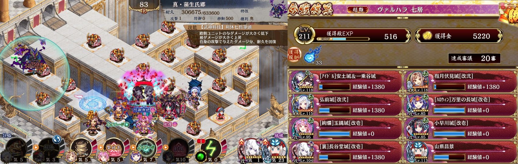 蒲生君無力化記念。指月伏見との噛み合わせが何かといい。重複可能割合デバフとは計算順の都合で相性微妙