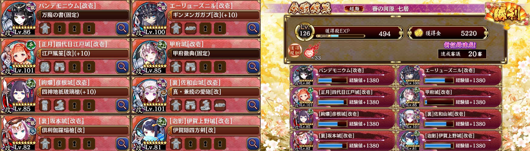 20審クリアしました。大体泡影伊賀上野とパンデモニウムが何とかしてくれました