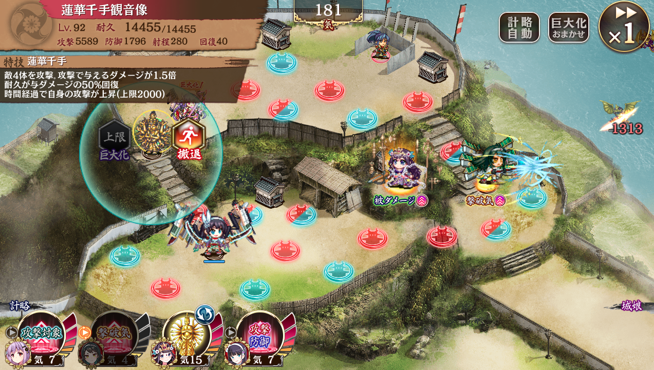 改弐伏兵。初手観音寺(初計27%短縮)から最速配置しても+2000到達はこのステージだと3波の序盤でようやく達成と、かなり時間が掛かった