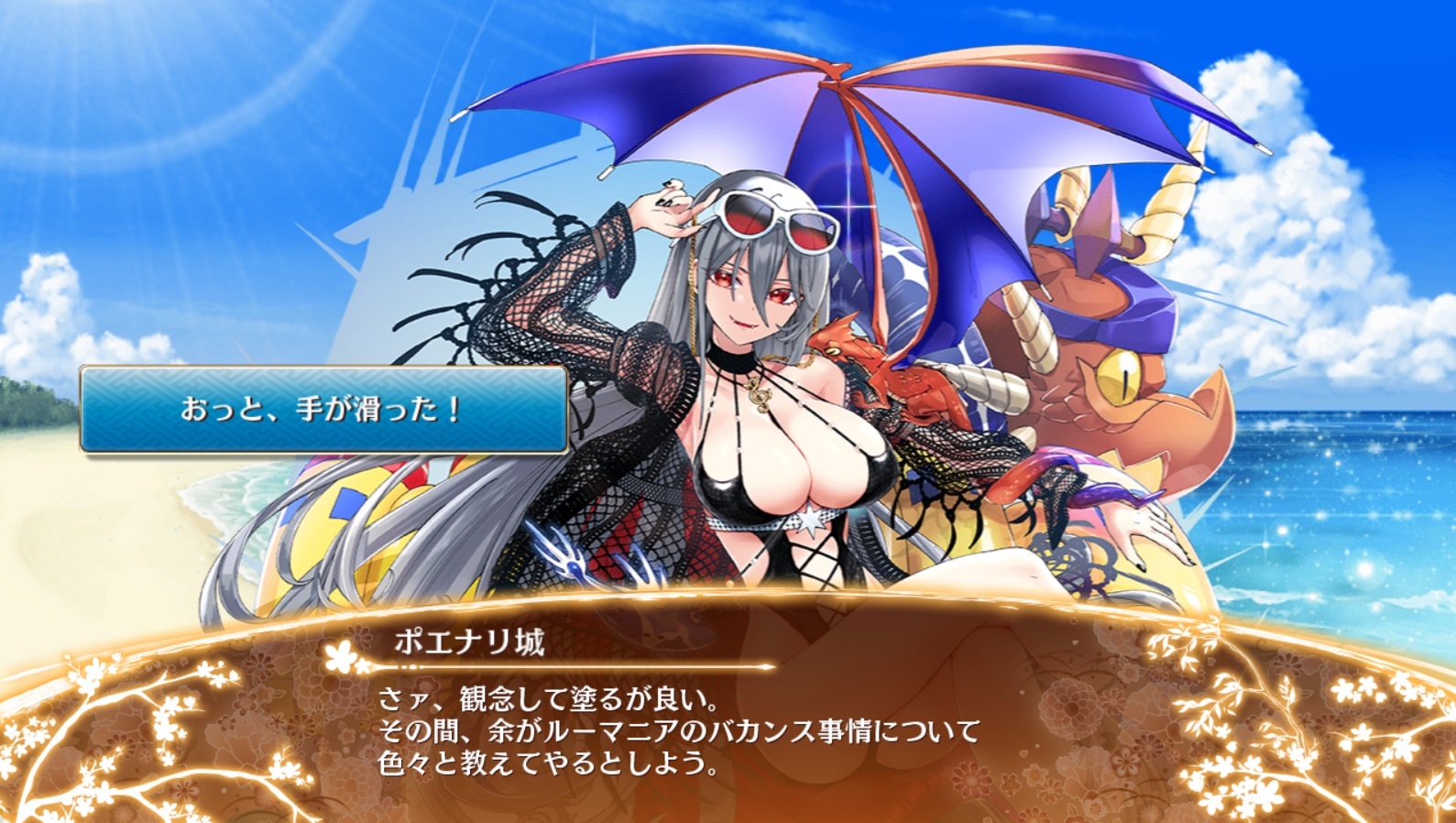 [夏]ボエナリの友好度イベントにて。さて、殿はどこへ手を滑らせたんだろう?