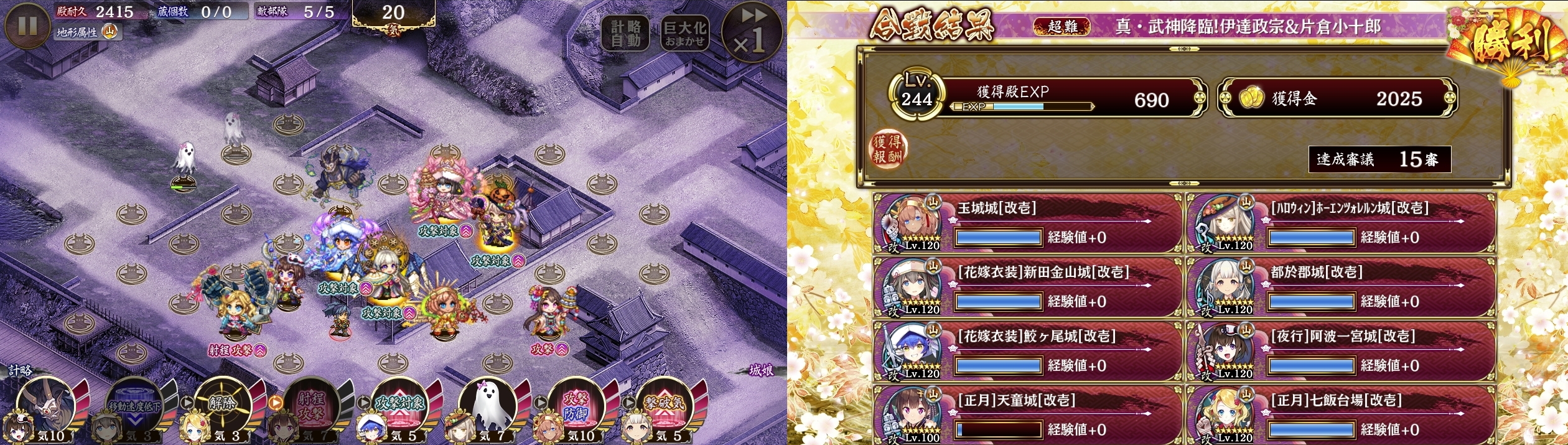 持ってる羅沙改零ぶち込みまくって120だらけの星6以下15審全戦功。やはり嫁ニッカナの遅延性能は★6にしてはかなり高いかわいい。ハロホーエンの大魔法は伊達起動、伊達討伐&龍削り、片倉討伐の3回