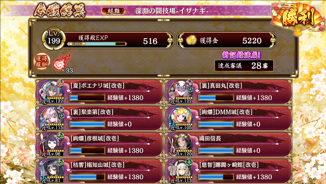 性能強化抜き、妖怪強化、城娘性能低下で28審。全体的に気が足りないな