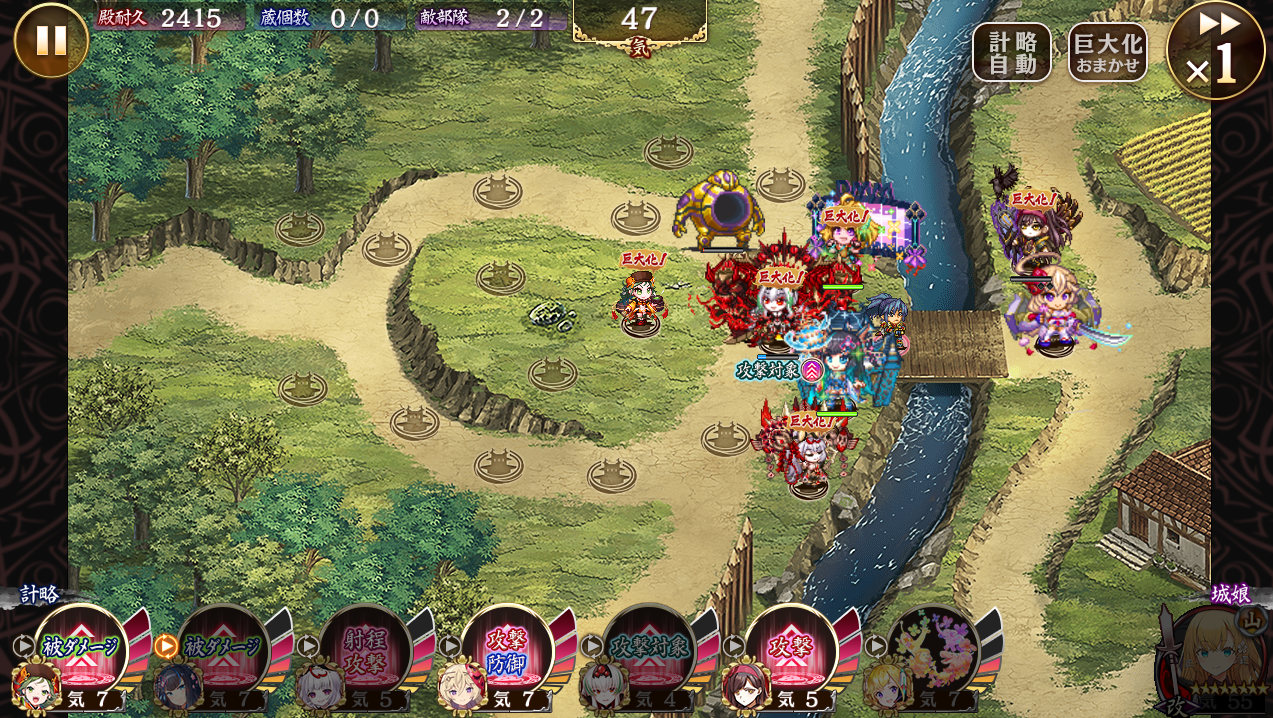 例えばこんな感じ(アイドル柳川を使わないのは本当に、申し訳ない)配布と三刀屋でクリアしてみました。絢爛松倉の姫鶴一文字で足止め。暁鴉雑賀の暗闇で偽王子射程低下。さっき適当にやってたら絢爛小谷落ちちゃったけど、こんな感じでバフデバフかけて耐えたり射程低下で殿への攻撃を防いだり色々方法はありますよ