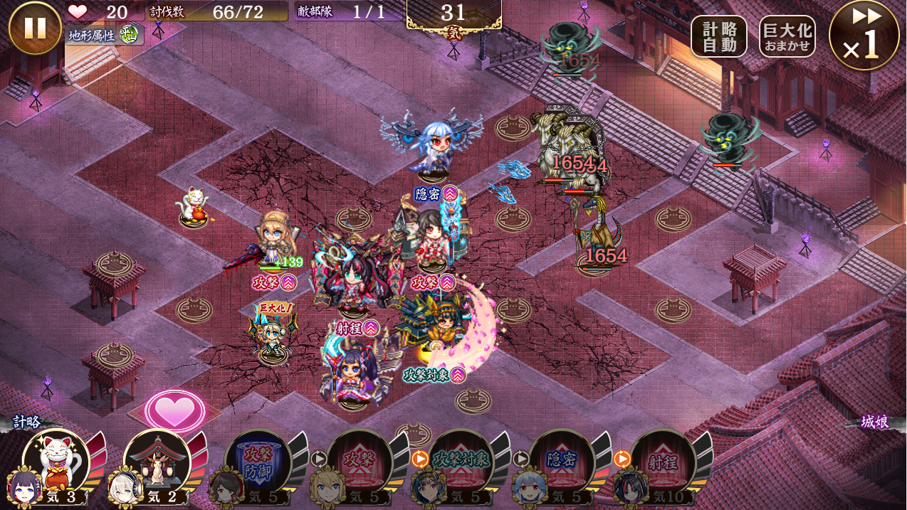 了解w 凸数は俺より上だわw ウィンザーは一凸で十分だし武器さえどうにかできればクリアできるはず。この配置だとくまもんが足止めする必要があるから白無垢、絢爛彦根は四神などできるだけ気を軽減できる装備にしたい。鹿野改弐は計略の追加気目的なので巨大化する必要なし。もし詰まることがあったら相談に乗ります