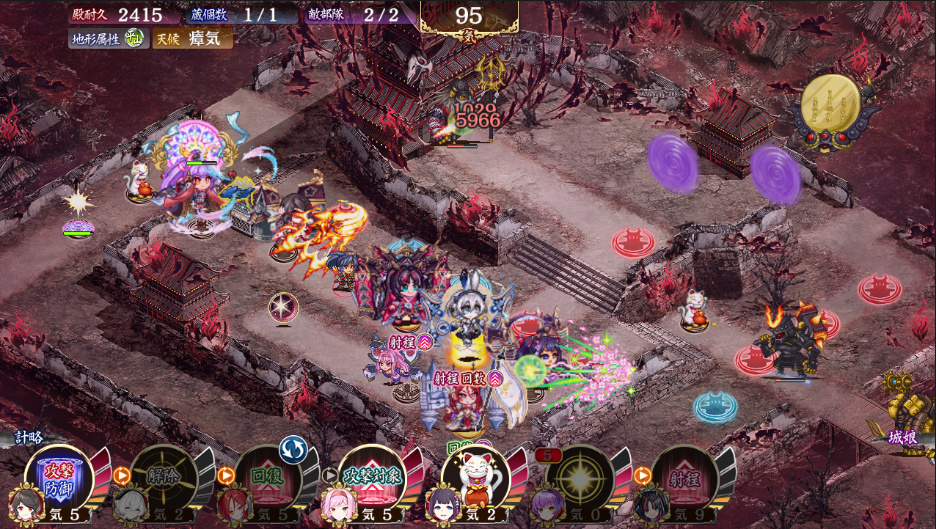 俺がクリアした時は威光多賀は6に配置。トークンは基本1と5に置く(最初は1)。消滅したら順次配置しなおすという感じ。絢爛彦根がいるならトークンを3に置くと気も稼げるよ。