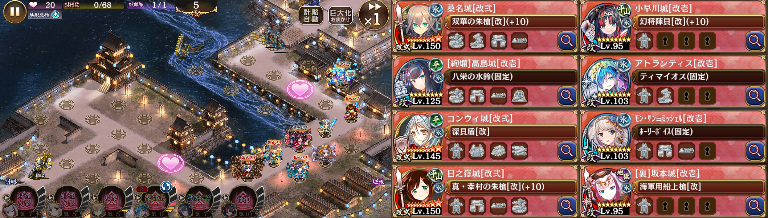 やっとクリア。日之獄は35、コンウィは15に置き直し。最後に大破寸前で小早川を撤退して再配置。なんでみんな正月小早川を持っとるの?