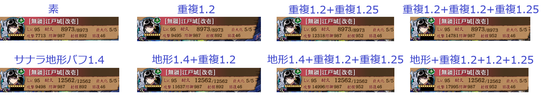 そう思って調べたけど重複1.2倍バフと大差なかったでござる。 地上敵被ダメ+も重複だったらなぁ…流石に壊れすぎか