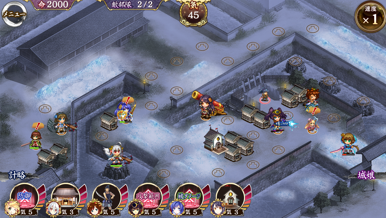 季節外れに舞う六花 -絶弐-【難】 柳川改壱⇒臼杵改壱⇒三原改壱⇒平戸⇒坂本⇒亀井⇒丸山⇒カーナーヴォン 配置が終わったら気トークンを配置しつつ臼杵をMAXまで巨大化で象に届く。途中カナヴンが複数椎形兜に削られるので注意