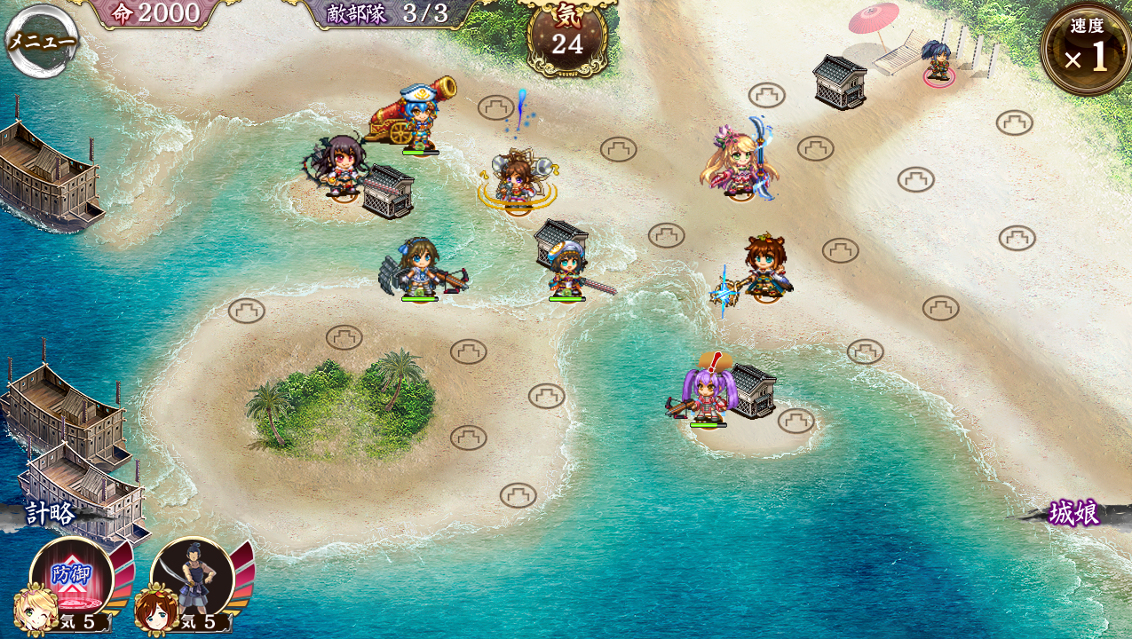 白浜の争奪戦 -参-【難】 尾山改⇒三原改⇒肥後千葉⇒板島丸串⇒多賀改⇒平戸改⇒亀井or福山そのあと各自ダメージは敵範囲に合わせて巨大化。三原は早めにしておくと良い ラスト術兜の群れが三原を襲うので平戸の海賊で乗り切る。丸串は最大化で範囲を広げて福山城で兜の群れを倒す。