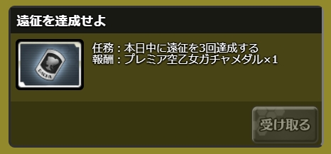 遠征の3回目達成報酬が「空乙女ガチャメダルx5」から プレミア空乙女ガチャメダルx1に変更になっています。