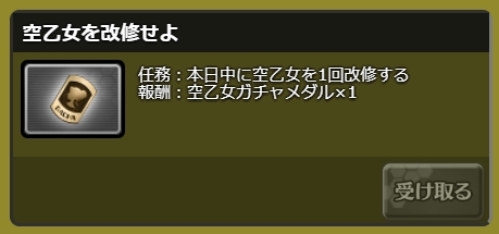 空乙女改修の任務で1回目報酬が空乙女ガチャメダルx5から、空乙女ガチャメダルx1に変更になっています。