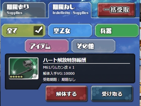[[M61バルカン改(全属性)]]は支給品の期限なしタブに入っていました。