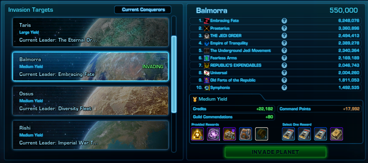 今週もConquest Point稼ぎお疲れ様です。 無事にGuild Weekly Target達成しました。 しかもLarge分ほど稼げているので、来週はさらにCharged Matter がもらえるLargeいってみよー