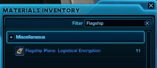 Flagship PlanのFlagmentはMaterials Inventoryに格納されます。 生産しないかたは、Logistical EncryptionをGuild Bankに寄付願います。