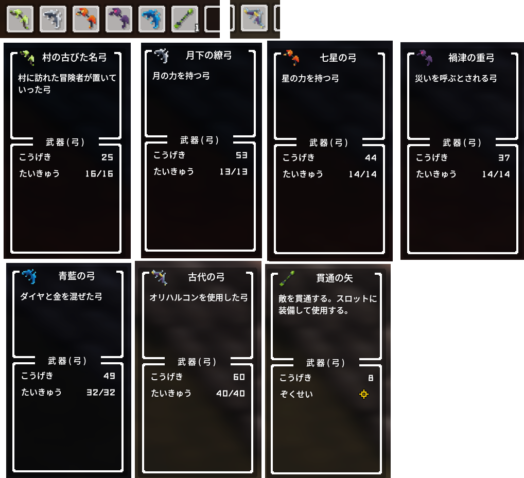 こちらもまとめて 矢は今回のテストからナーフされているのかと(当方は1回目のテストに参加していないので推測) クラフト可能な矢は木、石、鉄のみで材料などは変更なし 攻撃力は木2、石4、鉄10、貫通神速爆破8に今はなっています