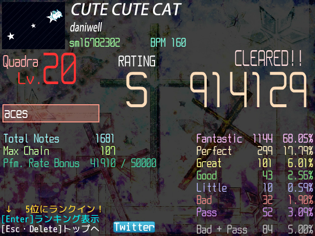 Lv20Quadra、残すはTwilight Highwayのみ……先に下位Lv全Sにしてから挑むか。