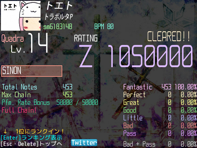 ''トエト&color(Red){Quadra};念願の理論値だ!!!''