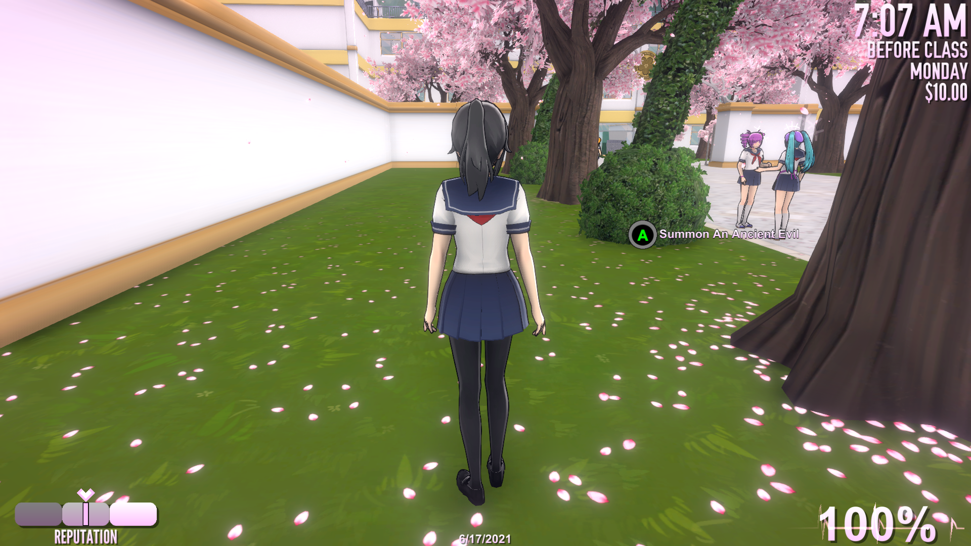 デバッグモード起動中に校門前の桜の木の裏に出現します