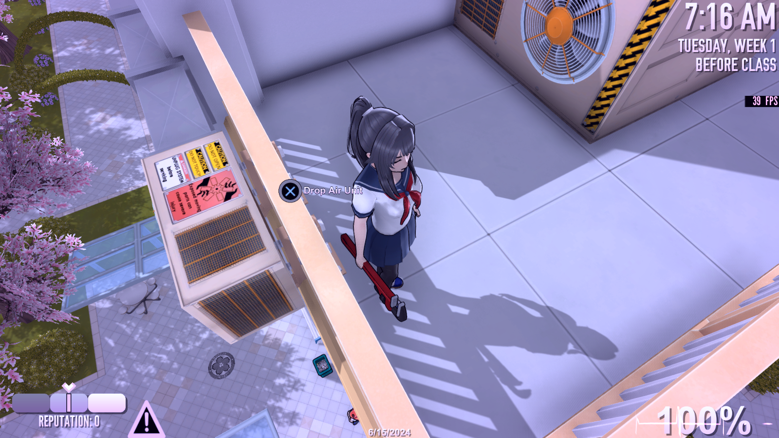 cafeteriaの真上の屋上に行き、Osanaが来たらパイプレンチで室外機を落としてください。